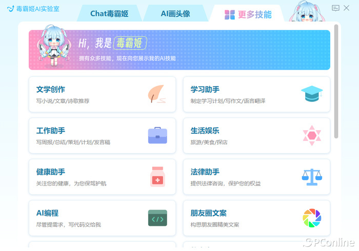 Chat毒霸姬集成于金山毒霸芳华版。而讲义学的内容都是较为根本的,此中包罗文学创做、进修帮手、工做帮手、AI编程、糊口文娱等等。刚出来工做的年轻人没太多项目经验仍是需要花费很长时间堆集的。终究做为老牌杀软旗下的新产物,金山毒霸芳华版本身就是一款平安、绿色、无且功能齐备的杀毒软件,虽然正在文学和艺术创做上,Chat毒霸姬就能立马给出一套完整的编程代码。